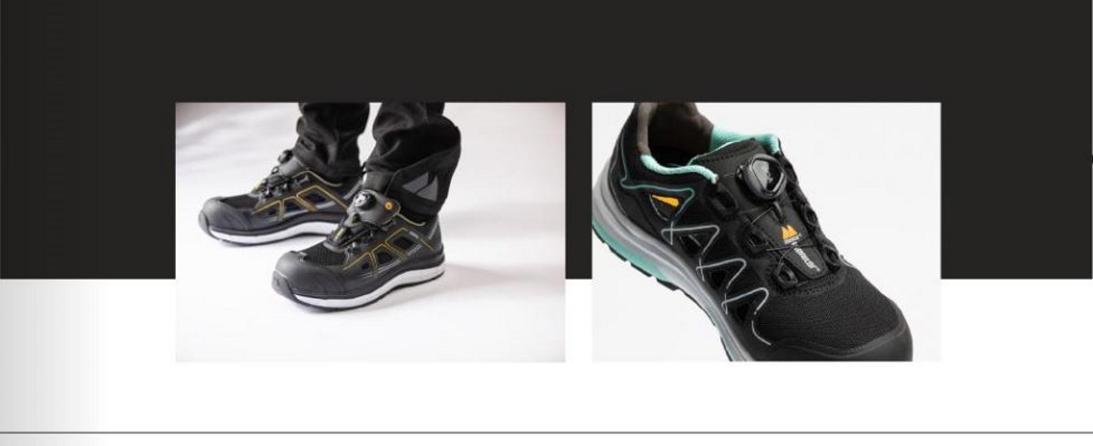Skyddssko med aluminiumtåhätta och mjukt spikskydd. Luftig sko med öppna ventilerande fält. Yttersula i gummi med mellansula i EVA. Ovandel i microfiber och mesh. Boa snörsystem. Bred läst.
